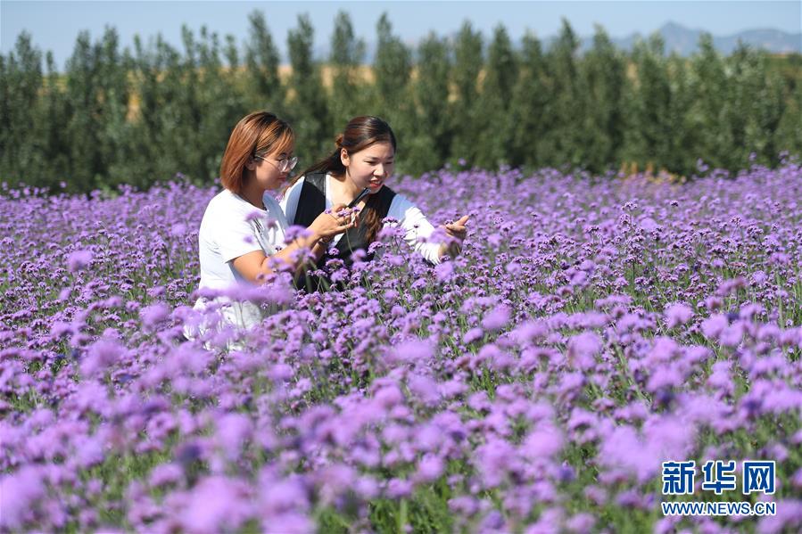9月21日,游客在内丘县扁鹊药谷中药材花海拍照观赏。 新华社记者 朱旭东 摄