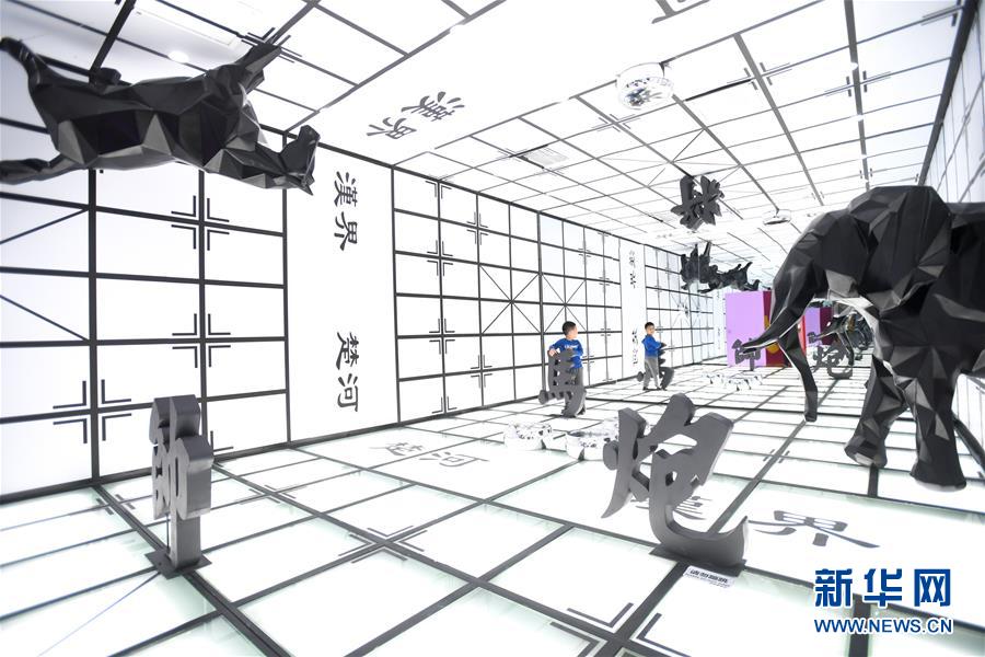 9月21日,小朋友在长沙市“字在其中”汉字国潮艺术展展区参观。 新华社记者陈泽国摄