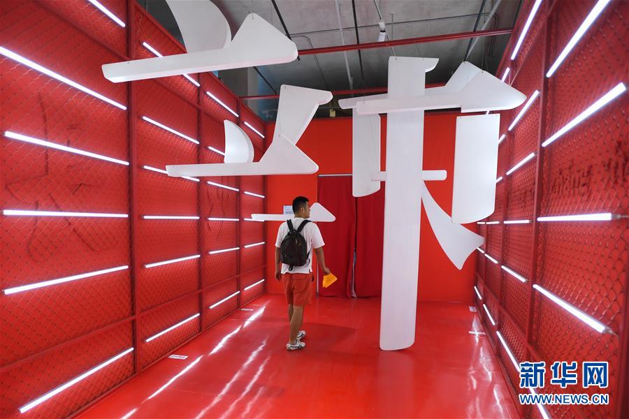 9月21日,观众在长沙市“字在其中”汉字国潮艺术展展区参观。 新华社记者陈泽国摄