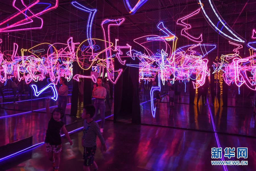 9月21日,小朋友在长沙市“字在其中”汉字国潮艺术展展区参观。 近日,“字在其中”汉字国潮艺术展在长沙市谢子龙影像艺术馆展出。展览包括“人在字中”“身临棋境”“字里行间”等展区,以新奇有趣的形式展现汉字的艺术魅力,吸引市民和游客前来观展。 新华社记者陈泽国摄