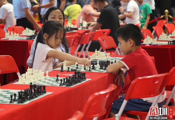 见圳客户端·深圳新闻网9月22日讯(见圳客户端、深圳新闻网记者 李云云 通讯员 刘佳会)“下国际象棋真的不是那么容易的一件事,以后我们真要多多支持孩子、多给他们打气加油。”上阵父子兵,家长和孩子同场下国际象棋,共同参赛是一种什么样的体验?9月22日,“全民健身日活动”2019年龙岗区第六届国际象棋亲子赛在红立方拉开帷幕。近300位亲子家庭选手同台竞技,来一场“指尖智慧的较量”。
