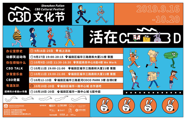 由中共福田区委宣传部主办,福田区宣传文化体育事业发展专项资金资助,深圳市节事工程师有限公司和深圳森喆文化传播有限公司承办的,福田区一年一度的“CBD文化节”就是一个为探索和建立CBD文化而诞生的节日!