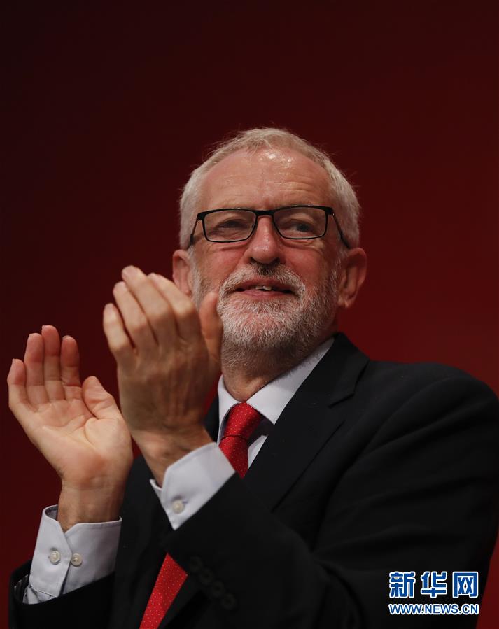 9月23日,在英国布莱顿,英国工党领袖科尔宾在工党年度大会上鼓掌。当日,2019年英国工党年度大会在英国布莱顿继续进行。新华社记者韩岩摄