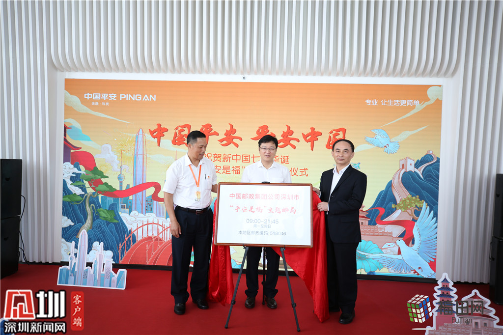 福田区委常委、宣传部长高大伟,中国邮政与平安集团相关负责人一同参加启动仪式并为邮局揭幕,为祖国七十华诞献上祝福。