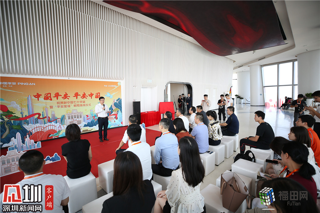 福田区委常委、宣传部长高大伟,中国邮政与平安集团相关负责人一同参加启动仪式并为邮局揭幕,为祖国七十华诞献上祝福。