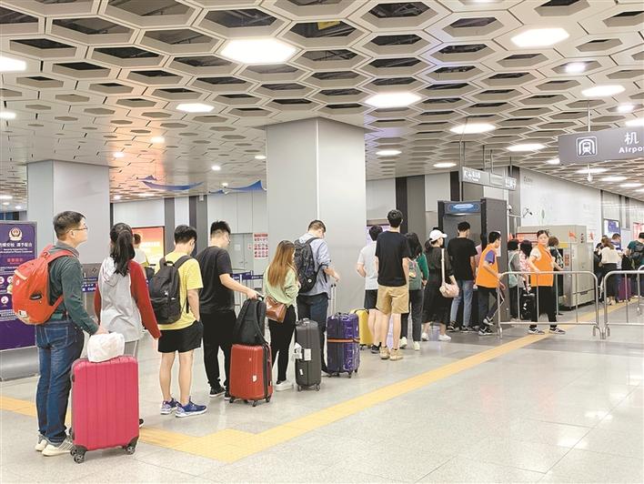 深圳新闻网讯 10月7日,国庆长假的最后一天,深圳宝安国际机场迎来了返程高峰期。尽管机场地铁站的安检口排起了长龙,但服务质量不打折扣,市民为工作人员的暖心服务点赞。