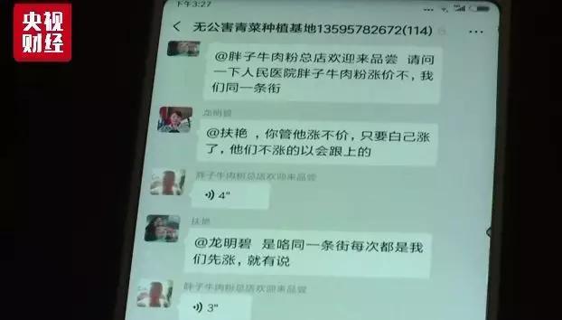 里面近一个多星期的聊天内容,绝大多数都与牛肉粉涨价有关↓↓↓(聊天语音)