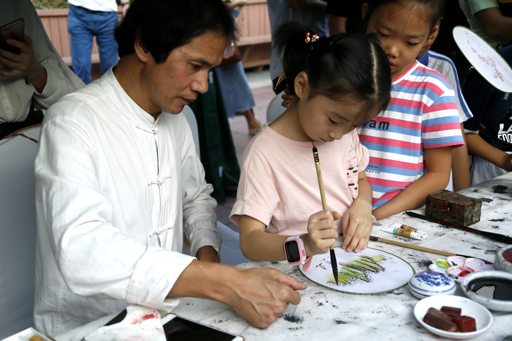 在非遗·缤纷创意市集,设置了脸谱、剪纸、扇画、糖画、中国结、捏面人、风车等多个摊位,市民群众络绎不绝上前围观,更有与老师交流互动,近距离体验学习传统手工技艺。