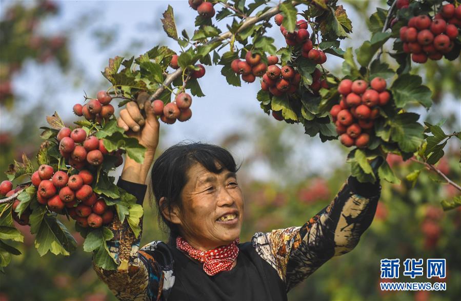 10月20日,武邑县武罗农产品种植专业合作社的农民在采摘山楂。近年来,河北省衡水市武邑县在脱贫攻坚中积极引导农民集中连片发展无公害山楂种植,取得了良好的经济效益。目前,该县已发展山楂种植3000余亩,带动10余个村600余户种植户致富增收。新华社记者李晓果摄