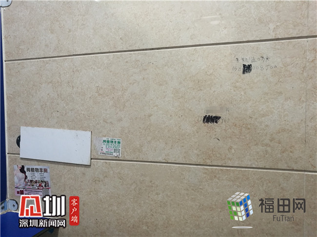 直播的第二站来到了水围村人人乐超市的公厕。由于空间限制,该厕所的空间较小,厕所内通道狭窄,且清洁卫生工具和电器电线随意摆放在通道旁,存在一定安全隐患。加之超市人流量大,地面未能及时清理,踩上去有黏糊糊的感觉。女厕所隔间卫生情况较差,垃圾满溢未及时清理,墙上有明显的污渍,给前来如厕的市民造成不便。男厕所异味较大,还未进入厕所就能闻到刺鼻的气味,且其中一个便池因损坏不能使用。此外,记者发现男女厕所每个隔间内有许多未清理的小广告,不仅影响美观,更给市民带来不良影响。