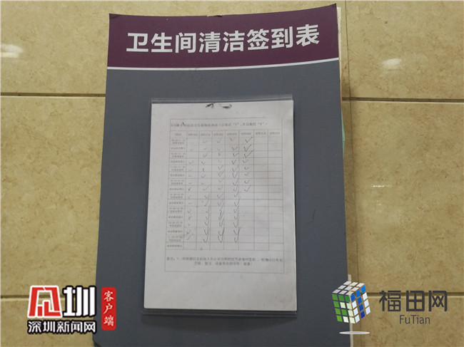 人人乐卫生间外的清洁签到表已经4个月没有更新。