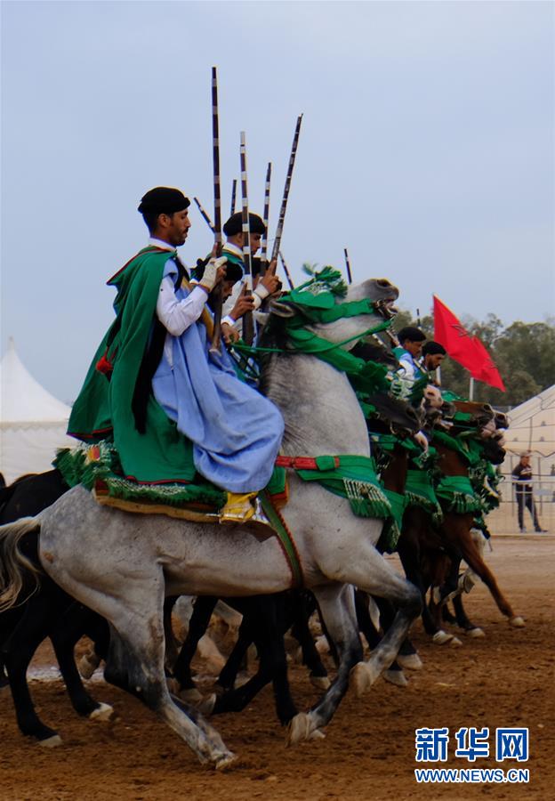 10月20日,在摩洛哥杰迪代举行的马术节上,人们身穿传统服饰参加传统骑术比赛。新华社记者陈斌杰摄