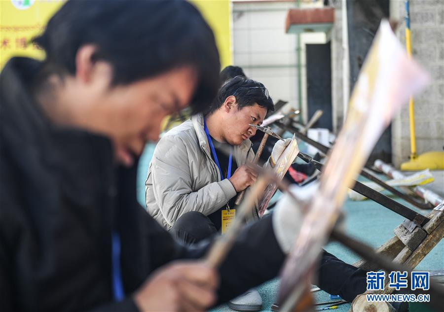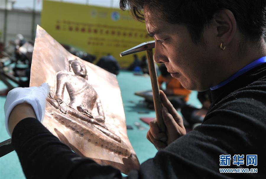 10月23日,在第二届西藏造像艺术博览会技艺大赛现场,造像师在打制西藏传统造像。当日,第二届西藏造像艺术博览会技艺大赛在西藏自治区群艺馆开幕,来自西藏各地的造像师根据现场随机抽出的造像题目,现场进行造像技艺展示,其中的佼佼者将会获得西藏自治区文化厅颁发的西藏自治区一、二、三级造像师证书。西藏目前有两千多名造像从业者,主要分布在拉萨、日喀则和昌都等地。新华社记者晋美多吉摄