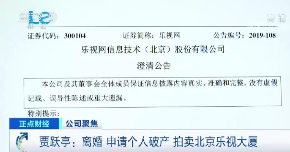 央视财经2019年10月24日讯 昨日晚间,乐视网发布公告回应贾跃亭个人破产重组问题,称截至目前,大股东及其关联方债务处理小组未拿出可实质执行的完整处理方案,乐视网未获得任何现金。