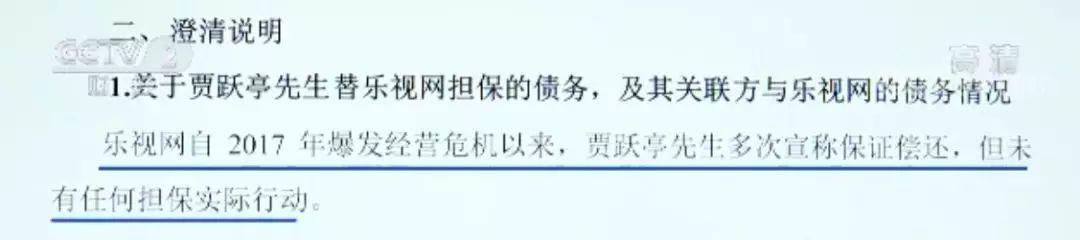 对这一说法,乐视网昨日晚间发布公告进行澄清,公告称,乐视网自2017年爆发经营危机以来,贾跃亭先生多次宣称保证偿还,但未有任何担保实际行动。