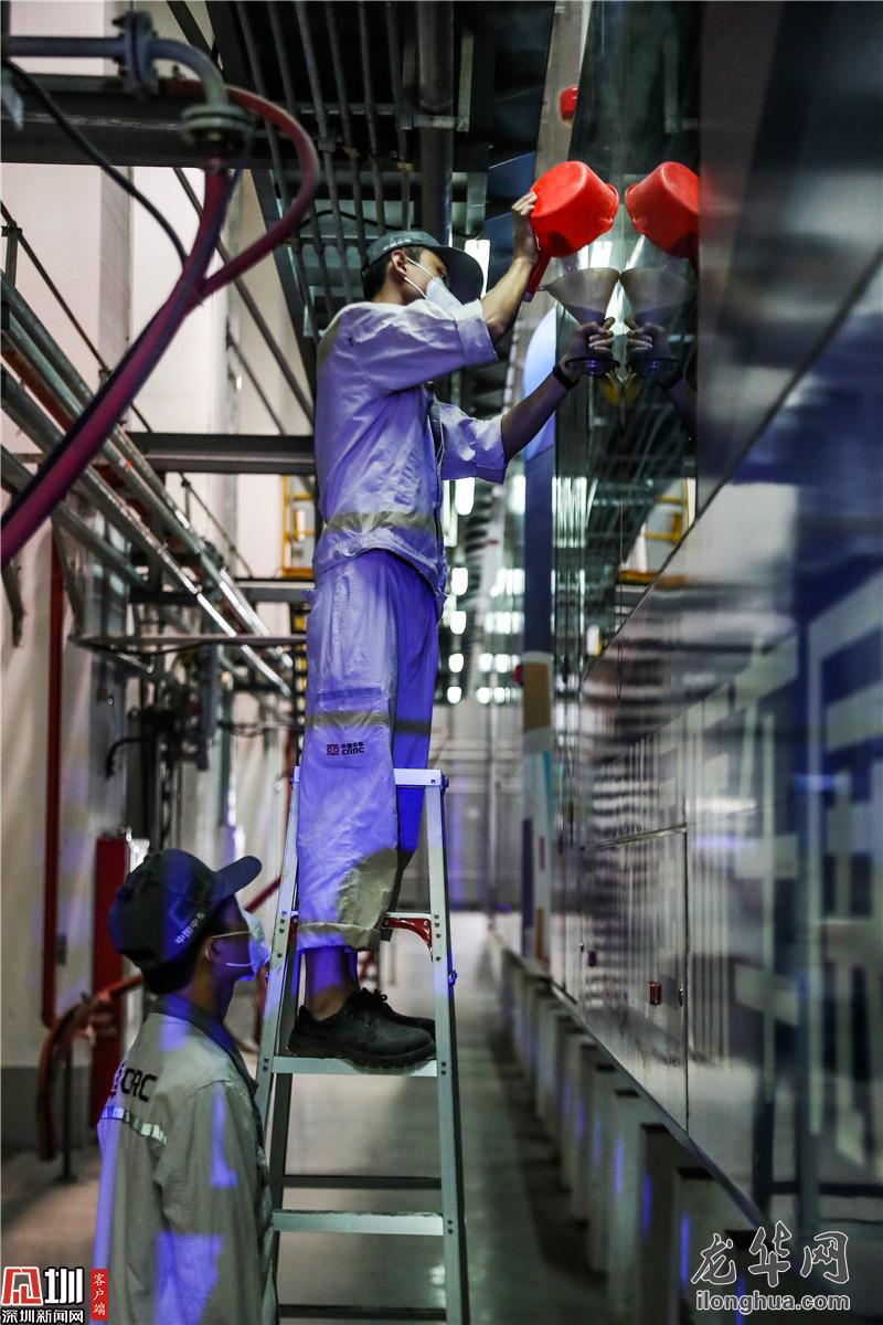 工作人员对变压系统进行日常检查。