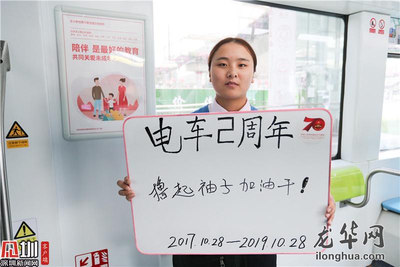 在龙华有轨电车运营两周年之际,工作人员在白板上写下对电车的祝福。