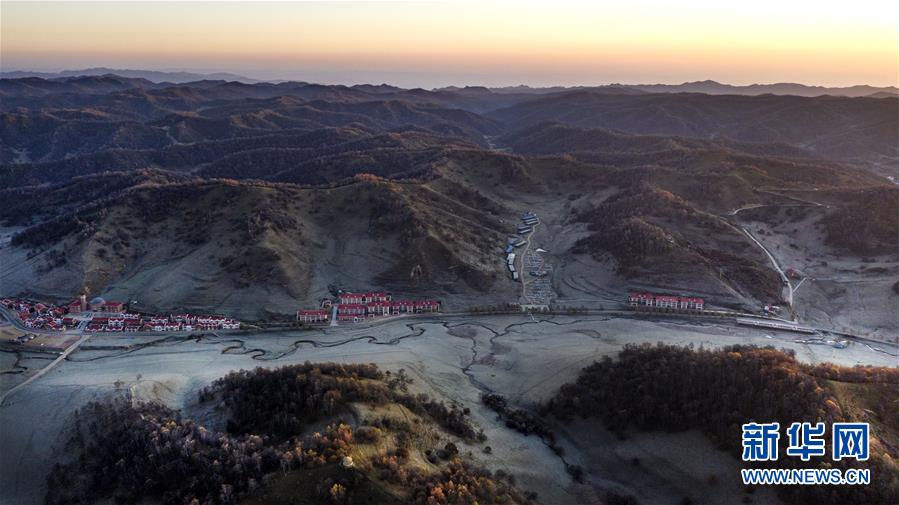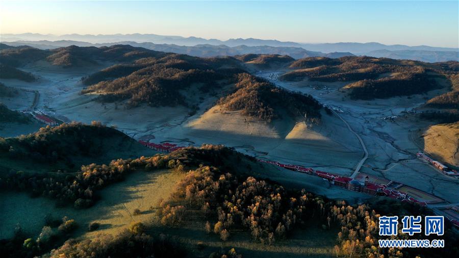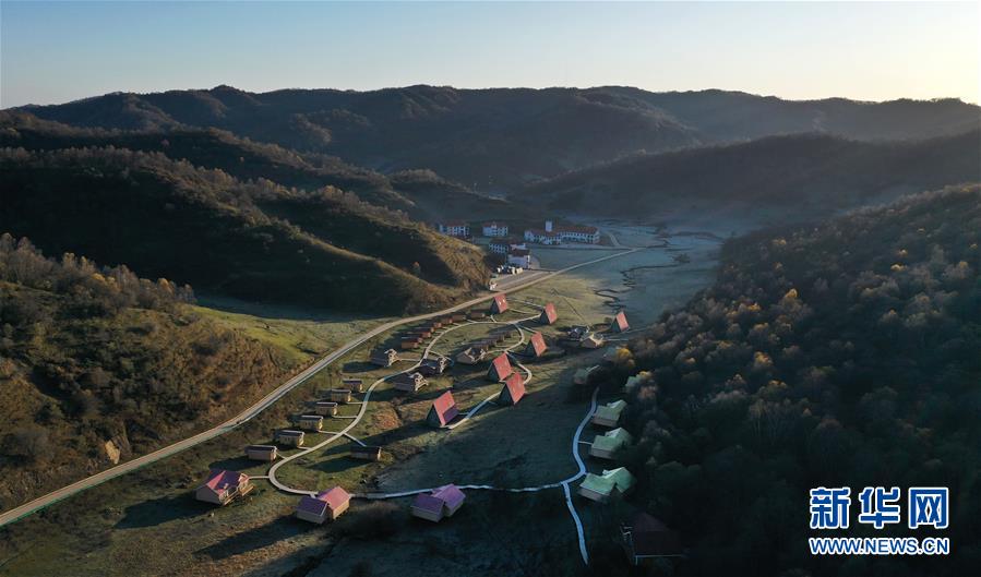 10月29日,初升的太阳照射着关山草原房车营地(无人机拍摄)。深秋时节,位于陕西省宝鸡市陇县境内的关山草原,104万亩山峦层林尽染,与镶嵌其中的35万亩泛黄的高山草甸,构成一幅意境深远的油画,胜过春日,令人心旷神怡。为了让游人尽情享受这秋天的美景,关山草原景区目前已敞开大门,免费让游客领略大自然的神奇魅力,感受别样的诗和远方。新华社记者陶明摄