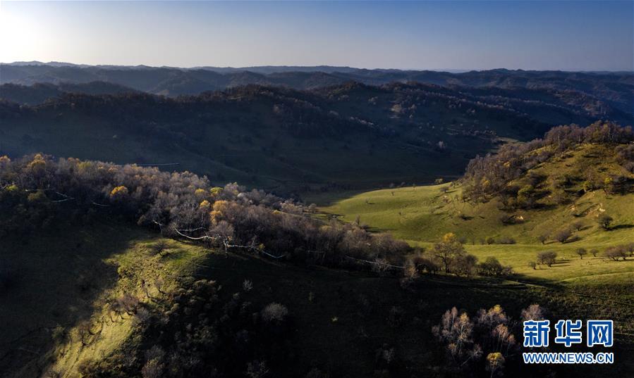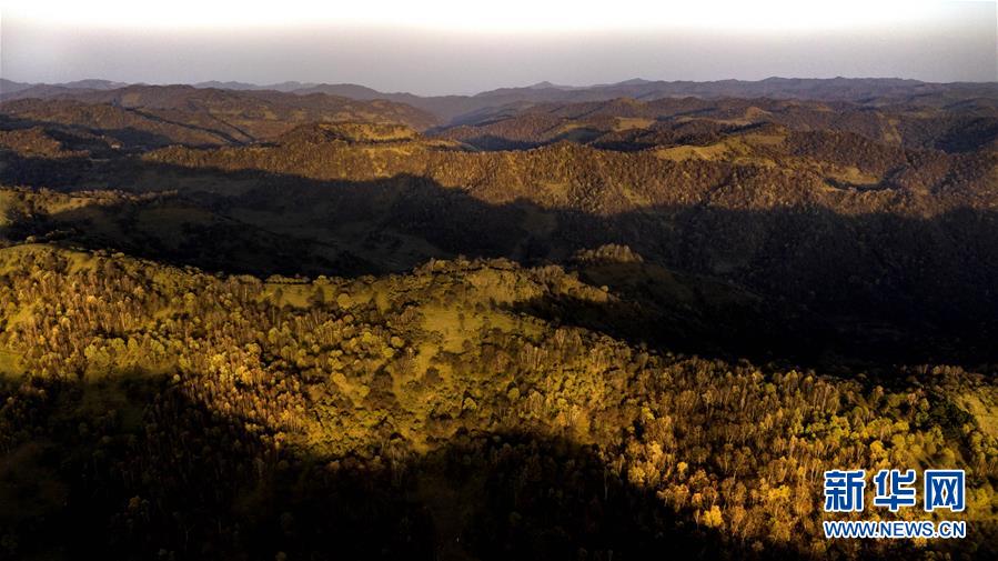 10月29日,初升的太阳照射下,山峦变成一片金黄(无人机拍摄)。深秋时节,位于陕西省宝鸡市陇县境内的关山草原,104万亩山峦层林尽染,与镶嵌其中的35万亩泛黄的高山草甸,构成一幅意境深远的油画,胜过春日,令人心旷神怡。为了让游人尽情享受这秋天的美景,关山草原景区目前已敞开大门,免费让游客领略大自然的神奇魅力,感受别样的诗和远方。新华社记者陶明摄
