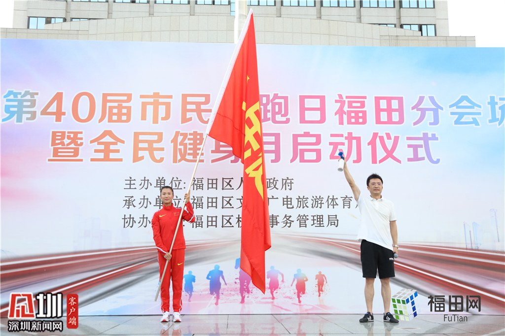 奥运冠军刘虹举着全民健身的旗帜,福田区委副书记、区长黄伟发令起跑。