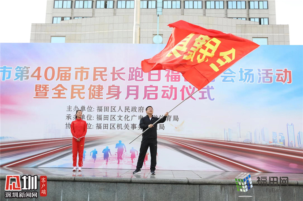 奥运冠军刘虹举着全民健身的旗帜,福田区委副书记、区长黄伟发令起跑。