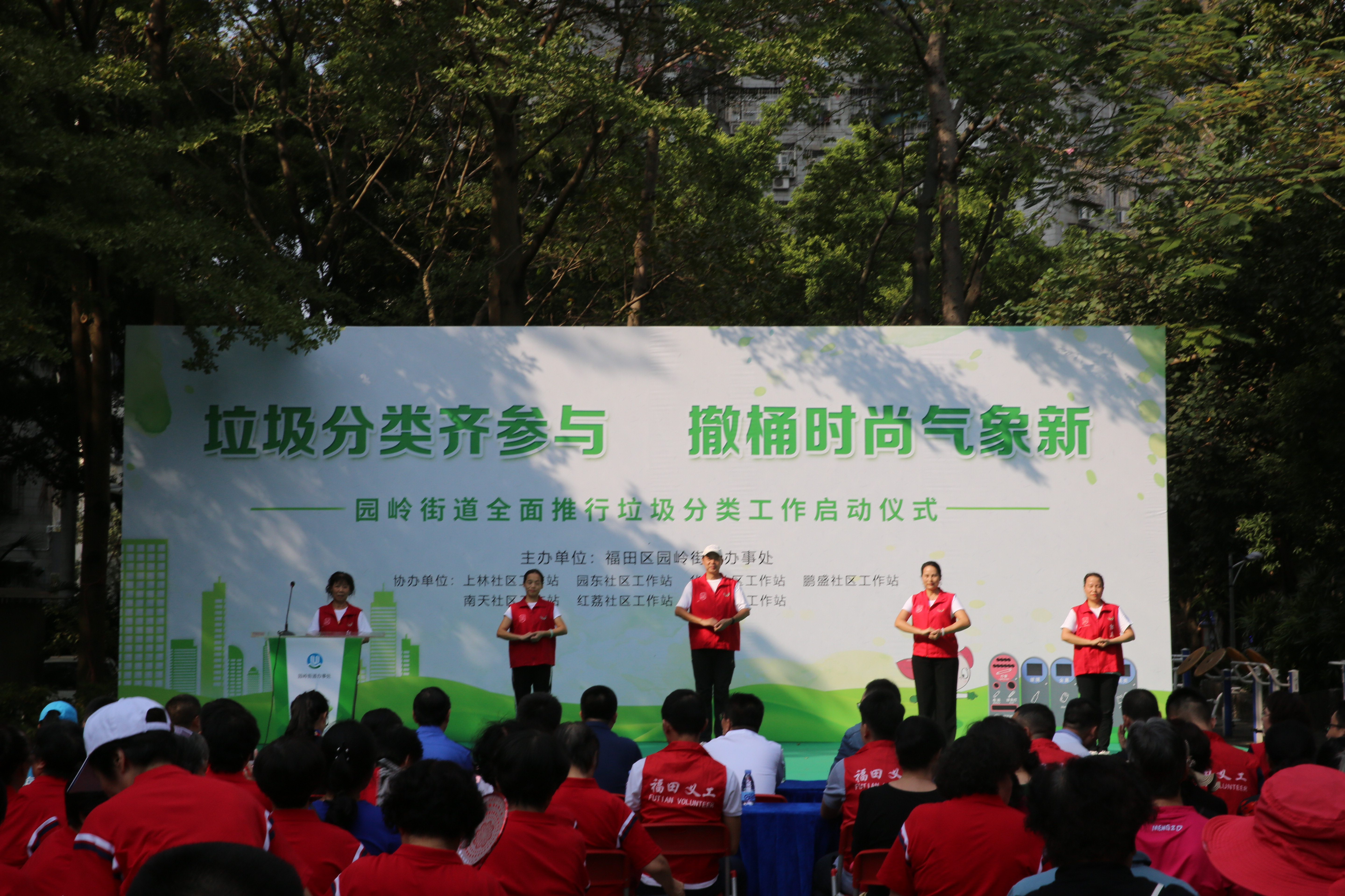 深圳新闻网11月1日讯(见圳客户端、深圳新闻网记者 何静)“作为一名园岭街道垃圾分类监督管理员,我倡议从源头上进行生活垃圾减量与分类,尽量减少使用一次性餐具...”。11月1日下午,由福田区园岭街道办事处主办,园岭街道各小区工作站协办,主题为“垃圾分类齐参与•撤桶时尚气象新”的园岭街道全面推行垃圾分类工作启动仪式在长乐花园举行。福田区人大常委会副主任陈慧明、园岭街道办党工委副书记赖育明、街道执法队负责人等参加了启动仪式。