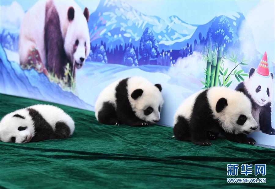 11月11日,三只新生秦岭大熊猫在陕西省林业科学院秦岭大熊猫繁育研究中心亮相。