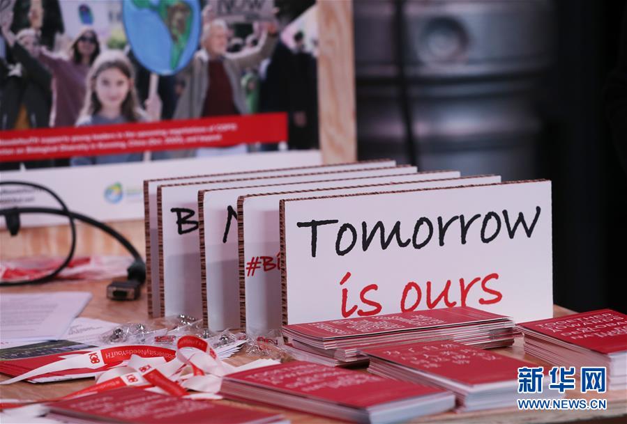 这是11月12日在法国第二届巴黎和平论坛上拍摄的一个展位标语。第二届巴黎和平论坛12日在法国首都巴黎开幕。与会者将围绕完善全球治理、维护多边主义和保护生物多样性等议题展开讨论,推动创新解决方案以应对全球挑战。新华社记者高静摄