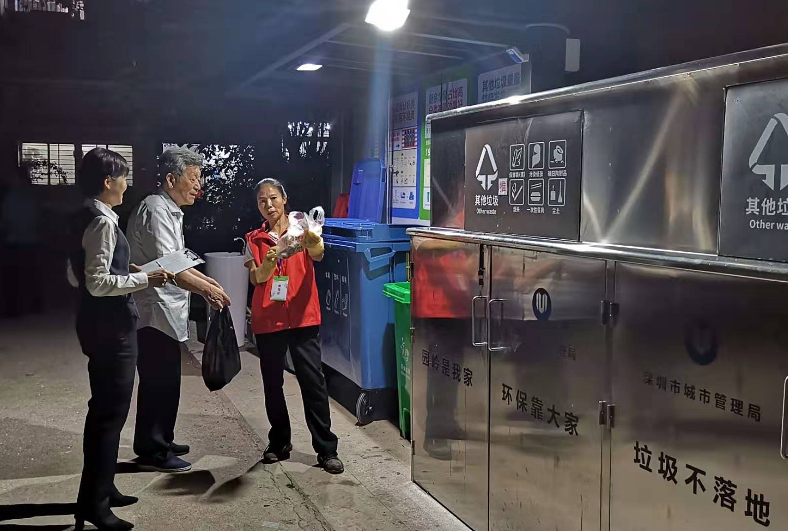 一项工作的落地,基层工作人站的战斗堡垒作用至关重要。在园岭街道长城社区内,仅仅用了3天时间,于11月10日凌晨完成了辖区内都有楼层的撤桶工作,11月11日当天全面开启垃圾分类工作,厨余垃圾的回收工作也进展良好。“在区里召开垃圾分类先行示范城区动员大会后,我们开展了3周的密集宣传。”长城社区党委书记宋明阳告诉记者,除了进行入户宣传外,为了保障撤桶工作的顺利进行,社区党委组织还召集辖区内所有物业经理及保洁主管召开“垃圾分类试点小区成果分享会”,让前期撤桶的物业现场分享遇到了哪些问题,以及如何解决问题的经验,让后续的垃圾分类工作少走弯路。