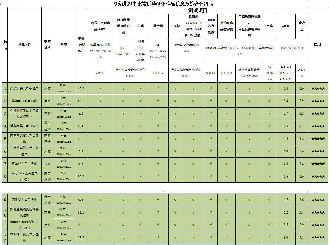 日前测评结果显示,18款样品全部符合本次比较试验所设定的安全性指标限值要求,其中评出的五星级婴幼儿湿巾有12款。本次测试的所有产品不仅满足当前国内相关标准要求,同时也满足了欧盟化妆品法规的限值要求。保护婴幼儿安全健康是国家及社会各界共同的使命,对产品品质进行高标准、严要求符合大众期待。本次获评五星级的12款婴幼儿湿巾产品品质领跑。