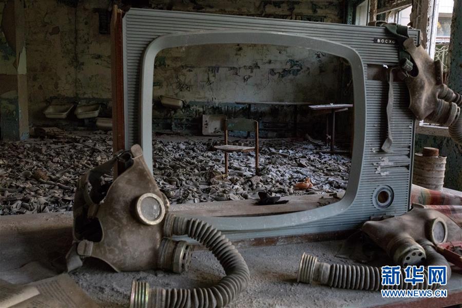 这是11月12日在乌克兰北部切尔诺贝利核电站附近的普里皮亚季城拍摄的一所废弃学校内的景象。新华社记者白雪骐摄