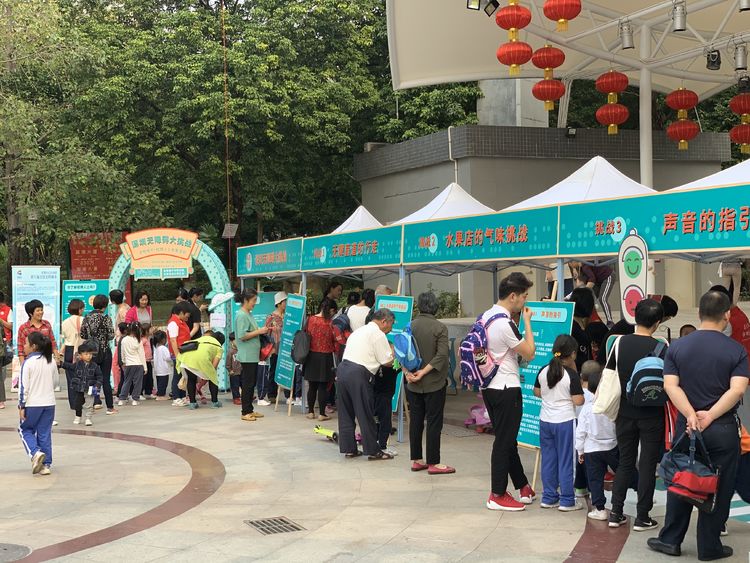 社区居民以家庭为小队来到莲花北村中心广场报名参加本次活动,活动现场设置了系列场景挑战项目,在志愿者的引导下,每个孩子佩戴一次性眼罩,手握盲杖,接连挑战“无障碍的行走”“水果店的气味挑战”“声音的指引”3个关卡,感受视障人士的世界。有助于培养少年儿童的爱心,日后能够主动帮助视障人士。