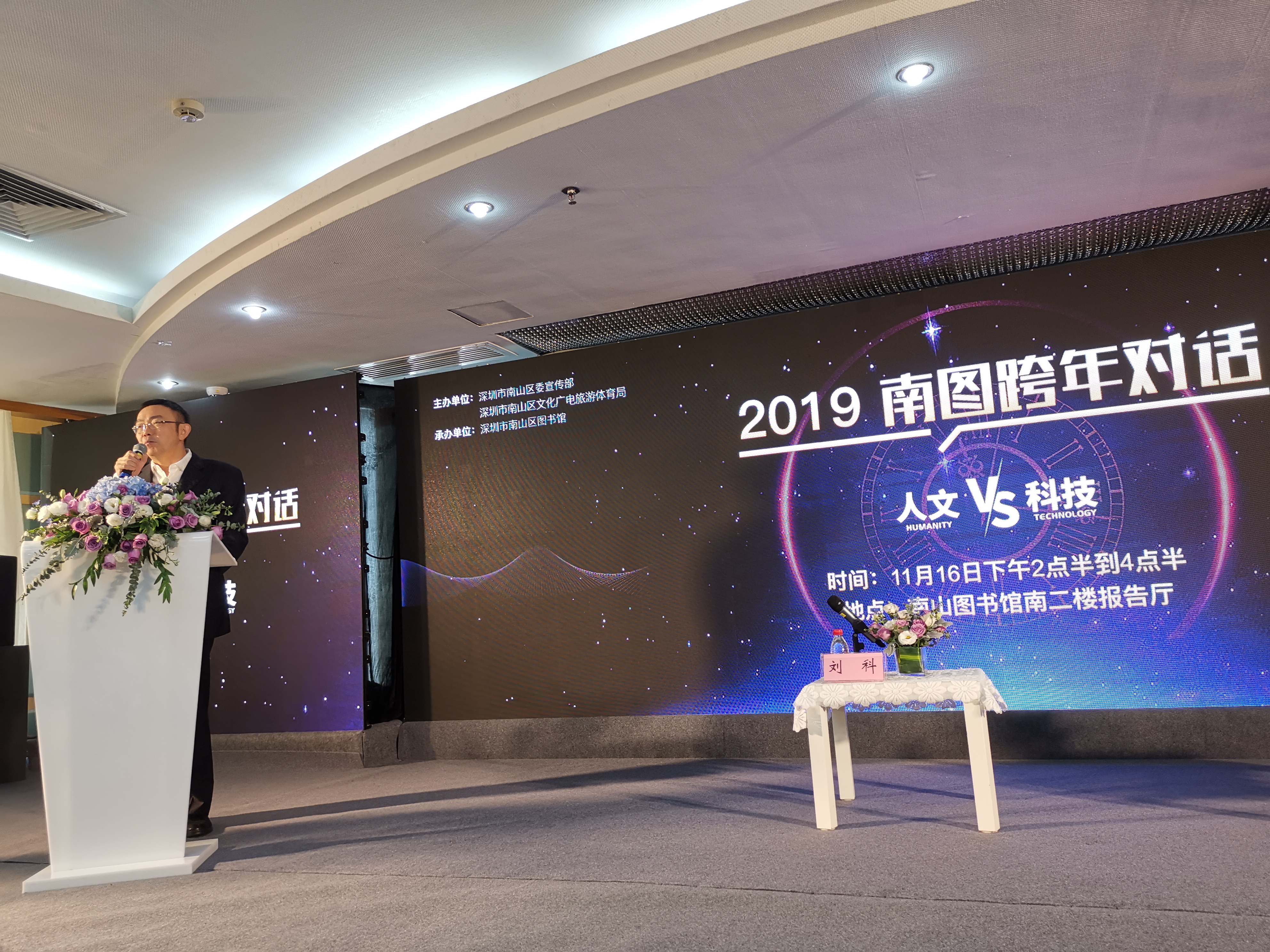 深圳新闻网讯(见圳客户端 深圳新闻网记者 王志明)11月16日,以“人文和科技,如何协作推动社会发展”为主题的“2019年南图跨年对话”在南山图书馆二楼报告厅火热开展,北京大学博雅讲席教授、教育部长江学者特聘教授、中央文史研究馆馆员陈平原,与南科大创新创业学院院长、澳大利亚国家工程院外籍院士刘科,分别代表人文和科技,给在场的200多位读者带来了一场“人文VS科技”的精彩对话。活动特邀深圳出版集团有限公司党委书记、董事长尹昌龙博士担任主持人,南山区委常委、区委宣传部部长廖子彬,南山区委宣传部常务副部长戴纪锋,南山区文化广电旅游体育局调研员杨幼一莅临现场。
