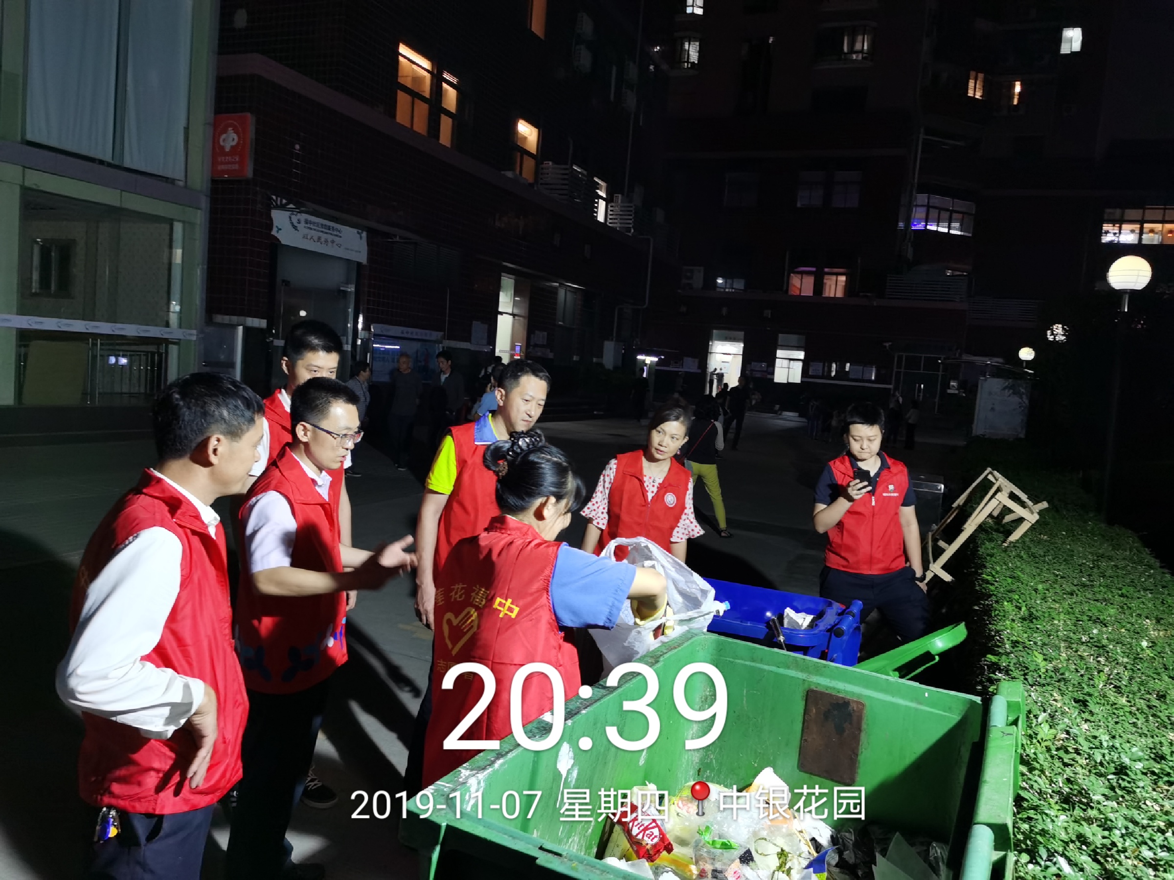 党员示范当先锋。每晚,社区安排党员志愿者和网格员入栋入户,宣传垃圾分类工作,对居民日常需要注意的生活垃圾分类进行详细讲解。至今已先后派发《家庭生活垃圾分类投放指引》、《楼层撤桶指南》、《给居民的一封信》等宣传资料近万份,张贴各类海报千余张,逐步提高群众知晓率、参与率和认同感。