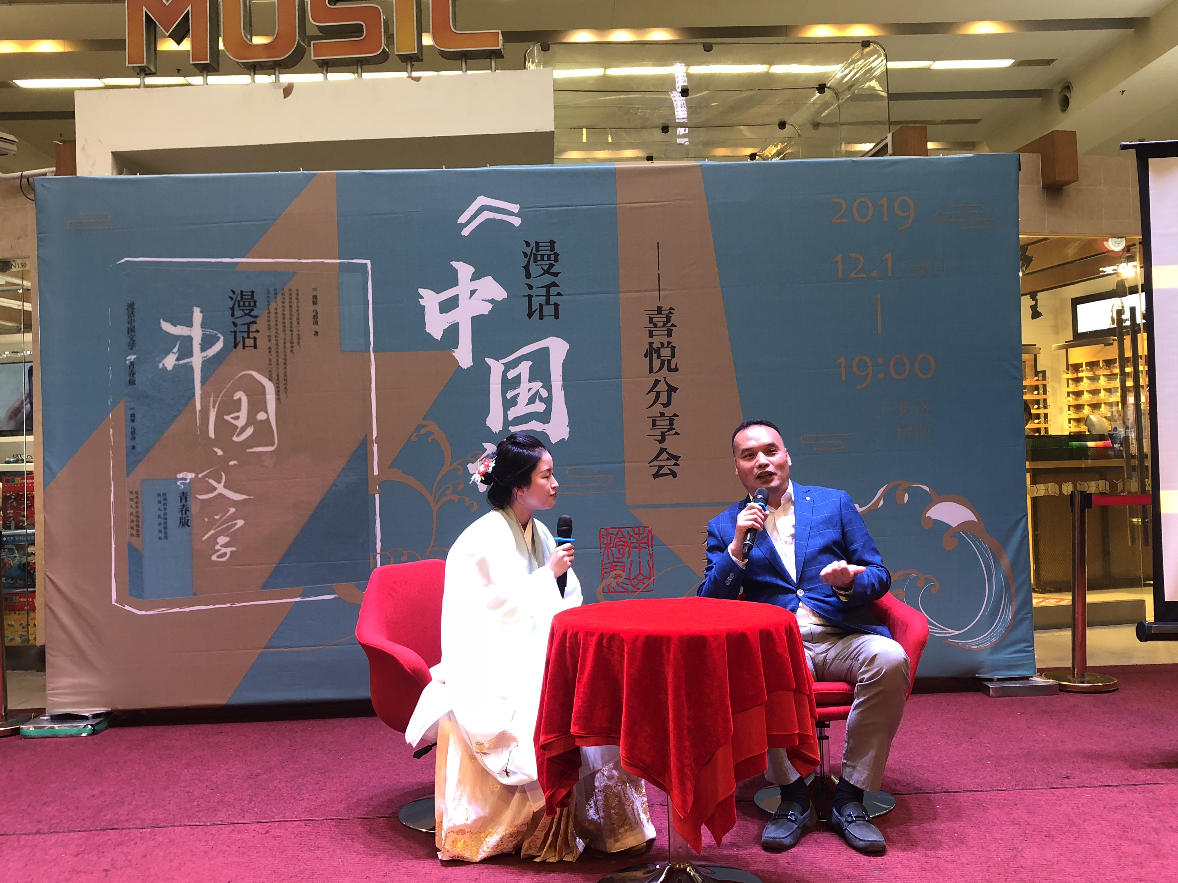 《漫话中国文学 青春版》在深圳市中心书城进行了一场别开生面的读者分享会,该书作者魏雁与马群涛现场分享了谈创作心得,