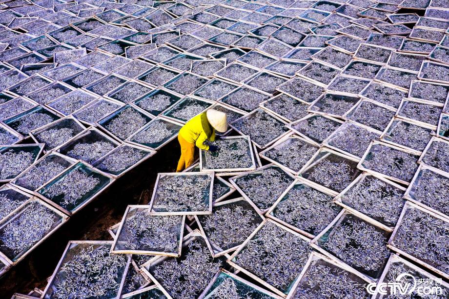 央视网2019年12月3日消息(具体拍摄时间不详)越南富国岛,当地工人们将凤尾鱼放进托盘里晾干,这些凤尾鱼将被用来制作鱼露。图片来源:视觉中国