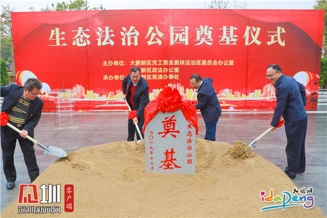 当日,大鹏新区还举行了葵涌生态法治公园奠基仪式。蒋溪林、王京东等领导出席,并为葵涌生态法治公园进行了培土奠基。记者了解到,葵涌生态法治公园占地面积7700平方米,目前正在按照省法治文化主题公园“六个一”“六个有”的评审标准,高标准、高质量、高效率推进葵涌生态法治公园建设,将打造成深圳的生态公园标杆。