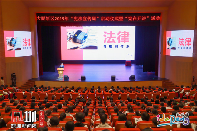 见圳客户端·深圳新闻网12月5日讯(见圳客户端、深圳新闻网记者 黎阳 李小辉 通讯员 孙婷)12月4日是第六个国家宪法日。12月5日下午,大鹏新区2019年“宪法宣传周”启动仪式暨“宪在开讲”活动在人大附中深圳学校高中部报告厅举行。本次“宪法宣传周”活动由大鹏新区依法治区办、大鹏新区政法办主办,大鹏新区综合办、新区教育卫健局、人大附中深圳学校协办。活动旨在深入弘扬宪法精神,推进新区法治实践创新,打造东部法治高地,为深圳法治城市示范建设注入大鹏力量。