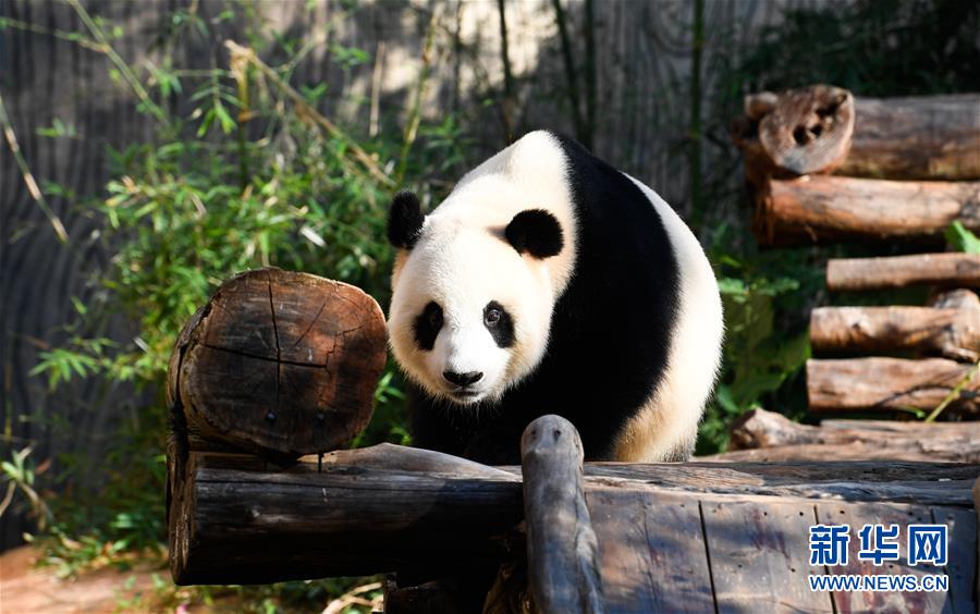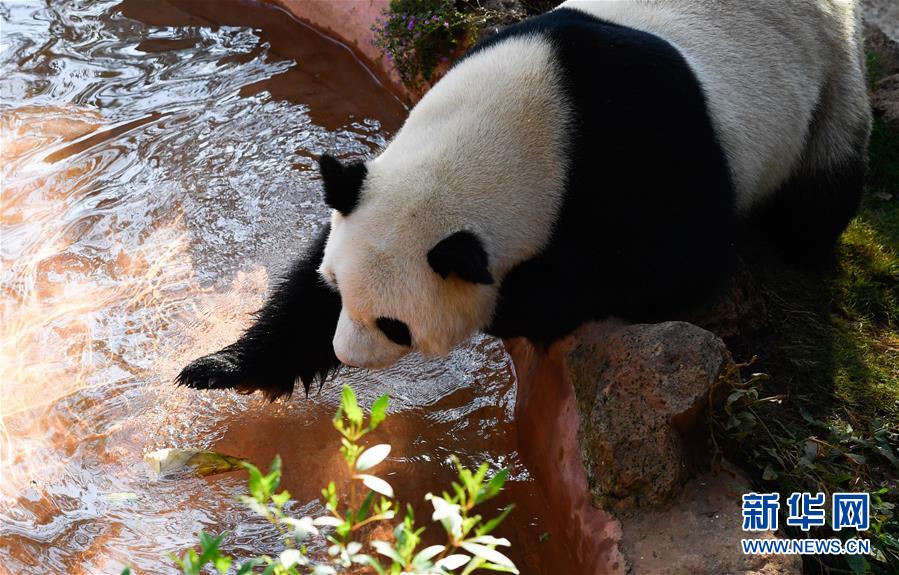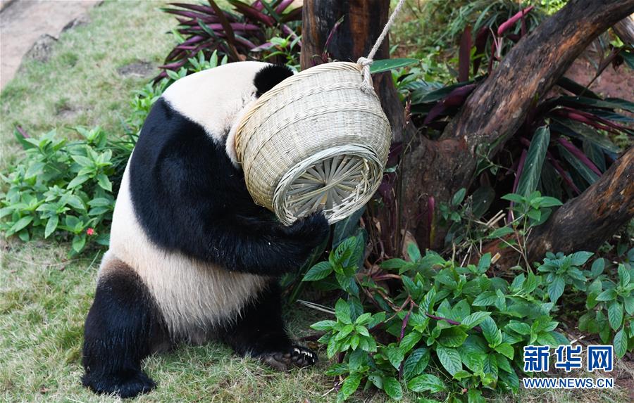12月7日,大熊猫“贡贡”在室外玩耍。海南热带野生动植物园内的大熊猫“贡贡”和“舜舜”走出空调房觅食玩耍,享受冬日阳光。据海南热带野生动植物园工作人员介绍,“贡贡”和“舜舜”在天气渐凉后便喜欢走出空调房,一般一天在室外活动6到7个小时。新华社记者杨冠宇摄