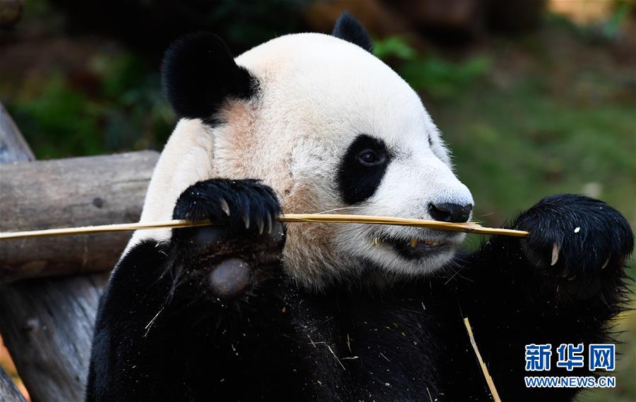 12月7日,大熊猫“贡贡”在室外进食。海南热带野生动植物园内的大熊猫“贡贡”和“舜舜”走出空调房觅食玩耍,享受冬日阳光。据海南热带野生动植物园工作人员介绍,“贡贡”和“舜舜”在天气渐凉后便喜欢走出空调房,一般一天在室外活动6到7个小时。新华社记者杨冠宇摄