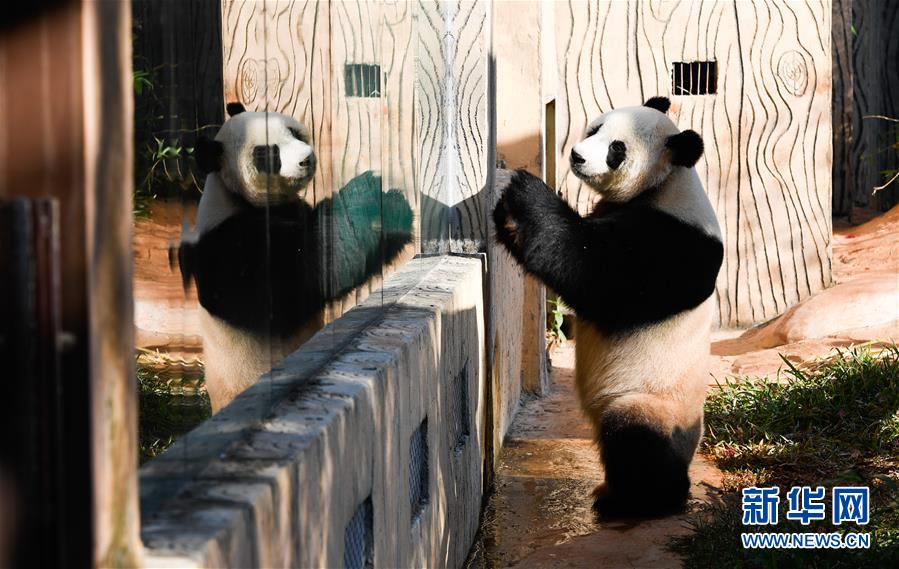 12月7日,大熊猫“舜舜”在室外玩耍。海南热带野生动植物园内的大熊猫“贡贡”和“舜舜”走出空调房觅食玩耍,享受冬日阳光。据海南热带野生动植物园工作人员介绍,“贡贡”和“舜舜”在天气渐凉后便喜欢走出空调房,一般一天在室外活动6到7个小时。新华社记者杨冠宇摄