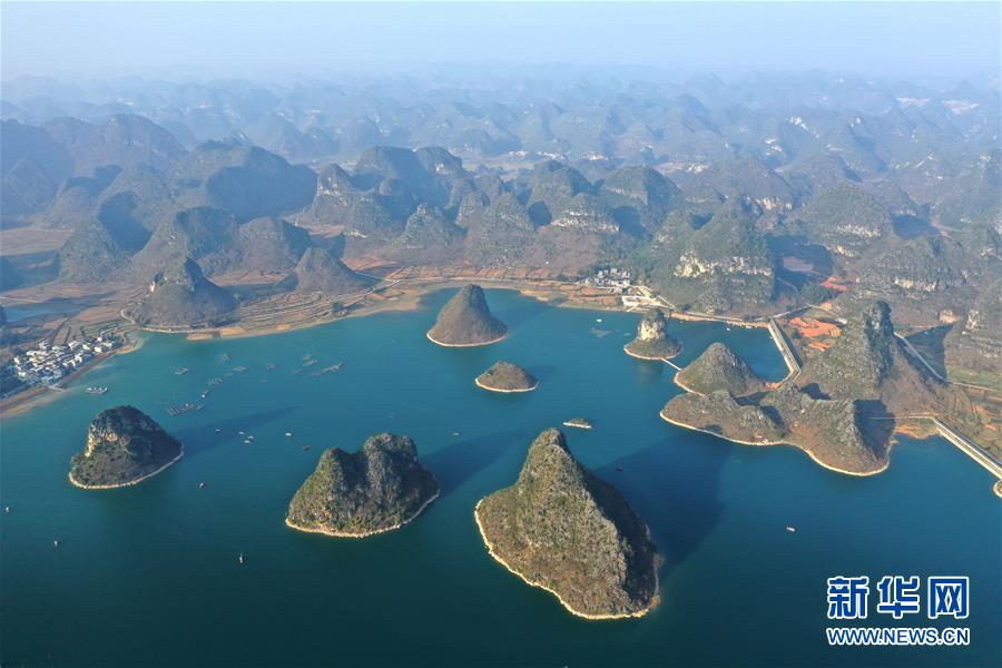 这是广西百色靖西市渠洋湖风光(2月9日无人机拍摄)。广西百色市是一块红色土地,地处滇黔桂三省(区)交会处,全市辖12县(市、区)总面积约3.63万平方公里,总人口420多万人。1929年,百色起义书写了中国革命史上的光辉一页。如今,百色市正崛起成为广西新工业基地、重要的铝工业基地、红色旅游基地和重要的“南菜北运”基地。新华社记者周华摄