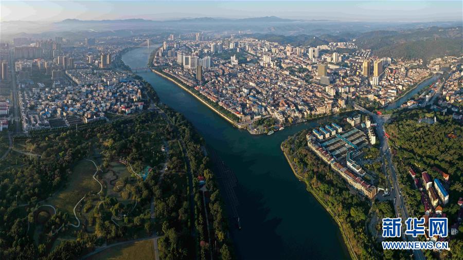 这是广西百色市城区新貌(12月7日无人机拍摄)。广西百色市是一块红色土地,地处滇黔桂三省(区)交会处,全市辖12县(市、区)总面积约3.63万平方公里,总人口420多万人。1929年,百色起义书写了中国革命史上的光辉一页。如今,百色市正崛起成为广西新工业基地、重要的铝工业基地、红色旅游基地和重要的“南菜北运”基地。新华社记者张爱林摄