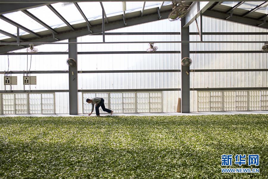 南投县一家茶厂工人在晒茶(12月11日摄)。新华社记者金立旺摄