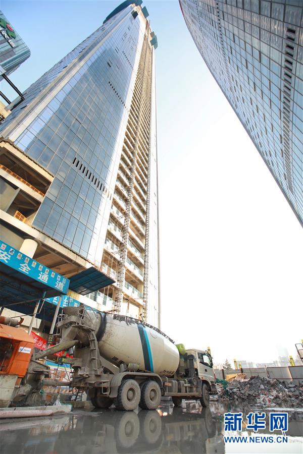 当日,中建西部建设贵州公司在在建的贵阳国际金融中心双子塔1号楼进行超高泵送混凝土试验,C120山砂高性能混凝土被成功泵送至401米高度。新华社记者刘续摄