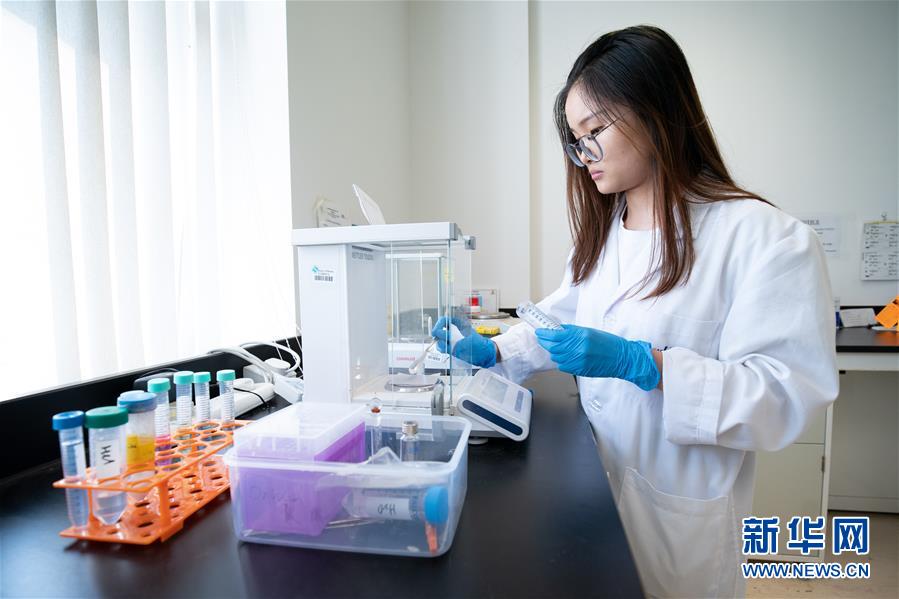 在中药质量研究国家重点实验室(澳门大学),学生称量药物样品(11月1日摄)。新华社记者刘金海摄