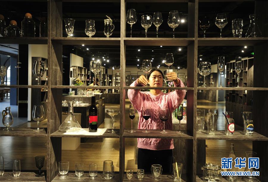 12月18日,工作人员在河间市尚德玻璃博物馆工艺玻璃展厅摆放玻璃产品。河北省河间市工艺玻璃制造行业起步于二十世纪七十年代,是当地一大传统支柱产业。近年来,河间市积极引导企业加大产品研发力度,推动工艺玻璃制造产业提档升级,产品远销海外50多个国家和地区。目前,河间市拥有工艺玻璃制品生产企业240余家,从业人员5万多人,年产值达20亿元。新华社记者朱旭东摄