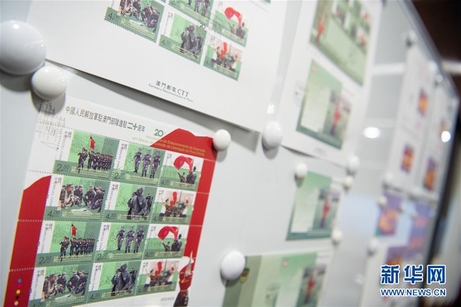 中国人民解放军驻澳门部队进驻二十周年纪念邮品(12月18日摄)。12月18日,澳门邮电局宣布,将于12月20日发行澳门回归祖国二十周年和中国人民解放军驻澳门部队进驻二十周年纪念邮品。新华社记者张金加摄