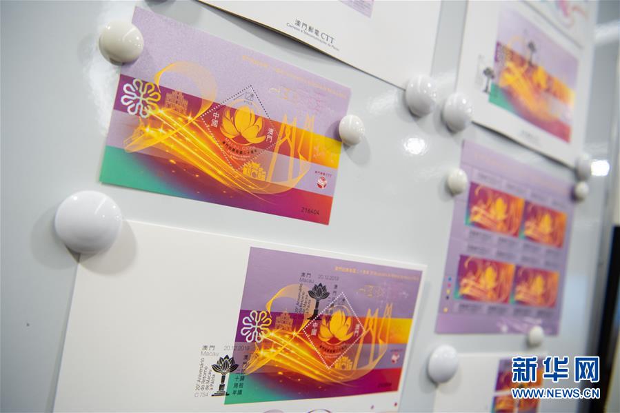 澳门回归祖国二十周年纪念邮品(12月18日摄)。12月18日,澳门邮电局宣布,将于12月20日发行澳门回归祖国二十周年和中国人民解放军驻澳门部队进驻二十周年纪念邮品。新华社记者张金加摄