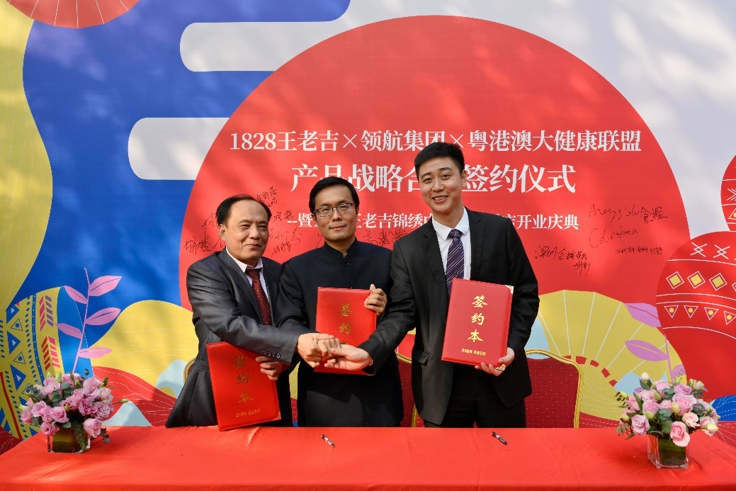 本次1828王老吉锦绣中华开业活动中,还举办了广州王老吉餐饮管理发展有限公司(1828王老吉)与广州市领航食品投资有限公司、粤港澳大湾区国际大健康产业联盟三方的战略合作签约仪式暨草本健康糖项目启动仪式,确立由粤港澳大湾区国际大健康产业联盟牵线、1828王老吉与广州市领航食品投资有限公司携手研发的健康草本糖项目,一旦草本健康糖成功面世,将会为“戒糖”人士提供选择更多样的低热量健康养生草本饮品,助力1828王老吉大健康产品理念。